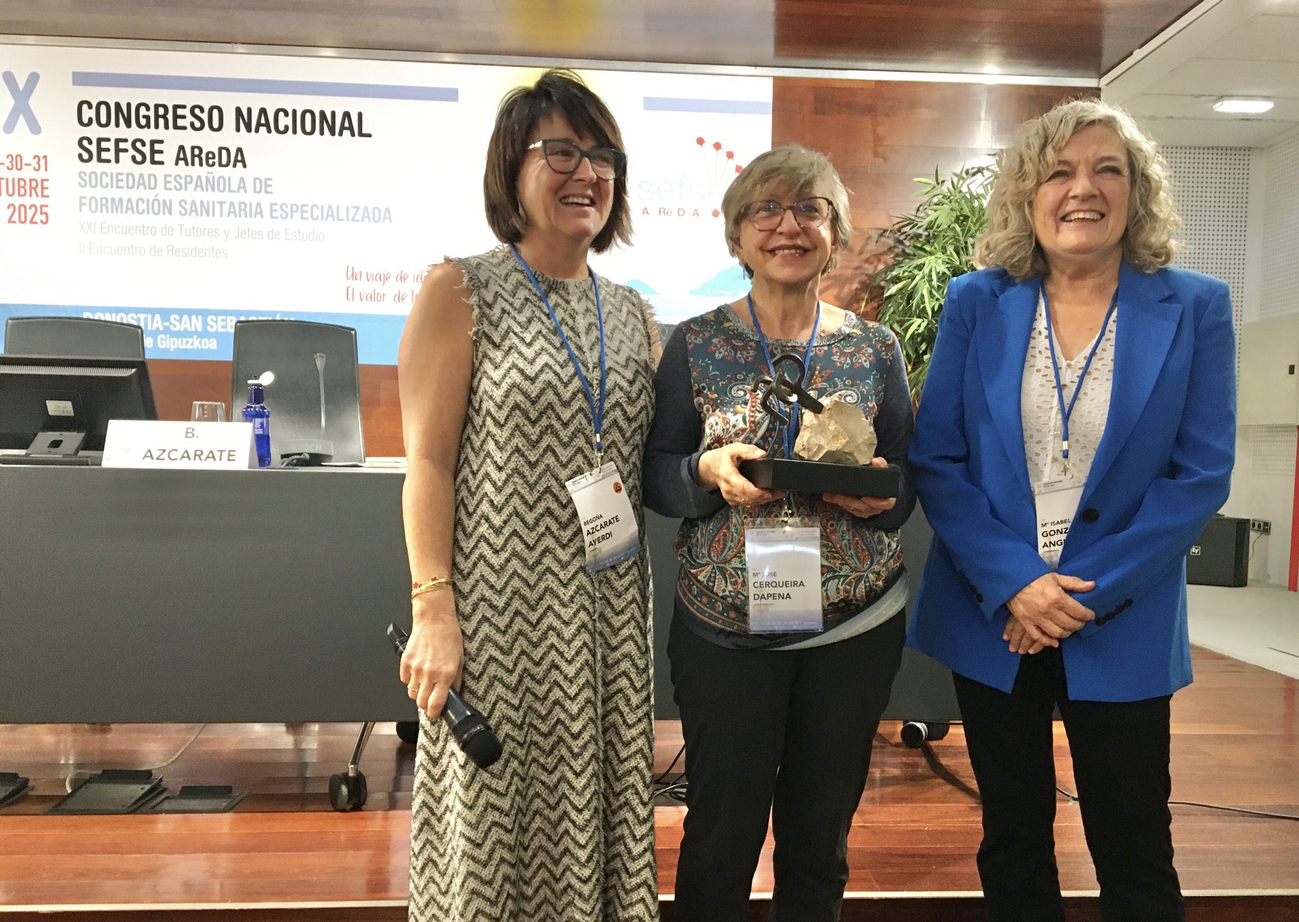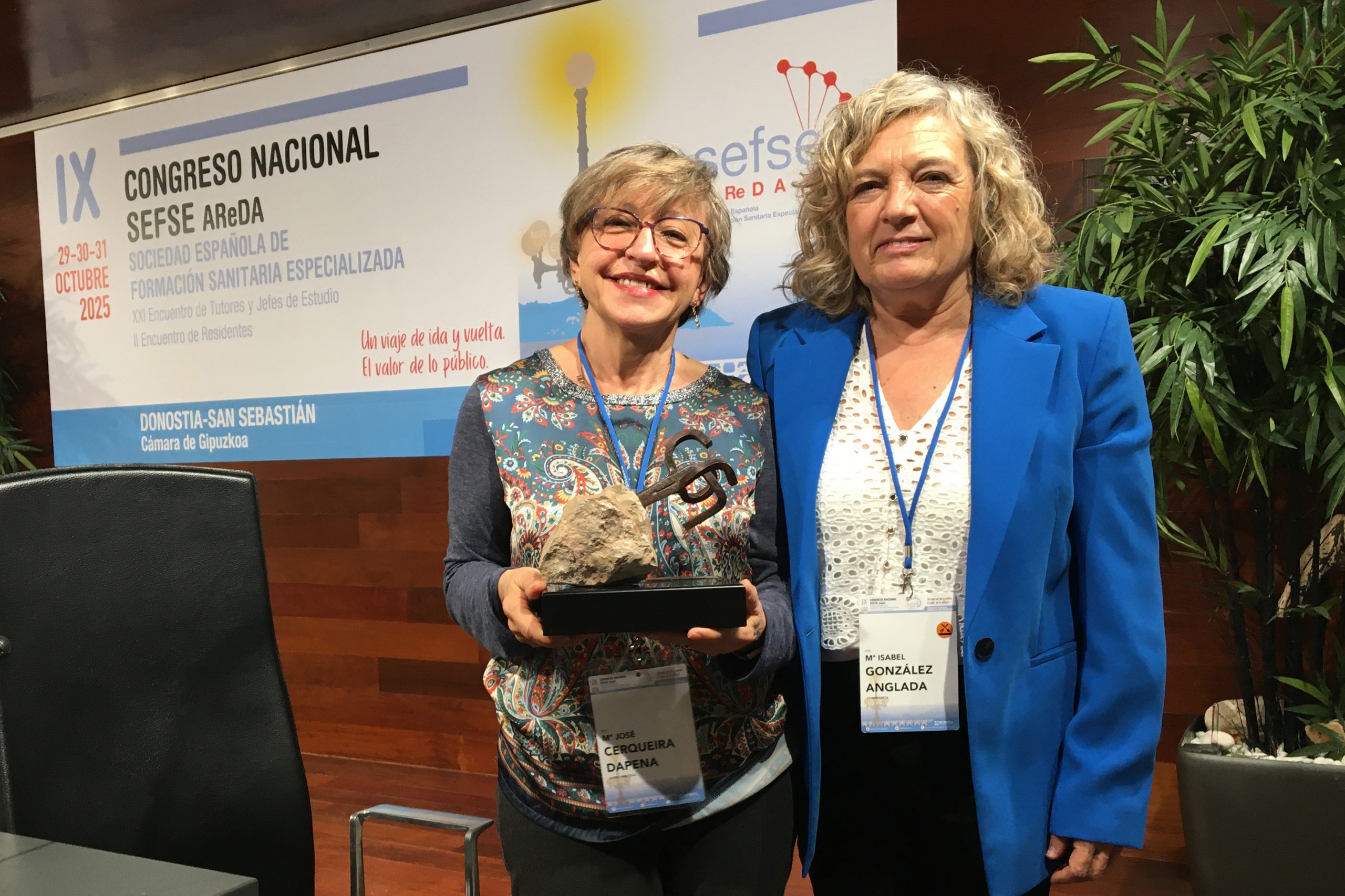Maria José Cerqueira Dapena recibió el IX premio Mati Ezquerra 2025 a la Excelencia en la Formación Sanitaria Especializada en España en reconocimiento a su liderazgo en la dirección y gestión de la Formación Sanitaria Especializada en Cataluña. El premio fue entregado por la presidenta de la sociedad Maria Isabel González Anglada, dentro del marco del IX Congreso SEFSE-AReDA y XXI Encuentro Nacional de Tutores y Jefes de Estudios celebrado en Donostia-San Sebastián los días 29, 30, 31 de octubre de 2025